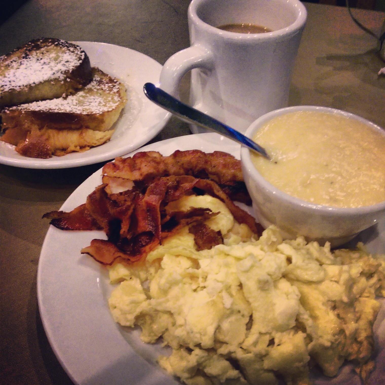 Upon entering the bistro, the shift in tone was viscerally palpable; that contrast between blindingly bright ice-laden sidewalks & freshly crisp air vs dimly lit smoke-filled corridors stained with the scent of espresso & bakery confections.